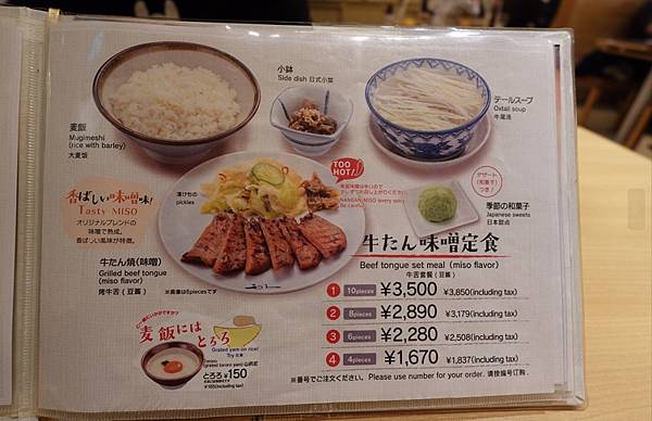 定食的組合基本上是先選擇牛舌主餐要厚切還是薄切