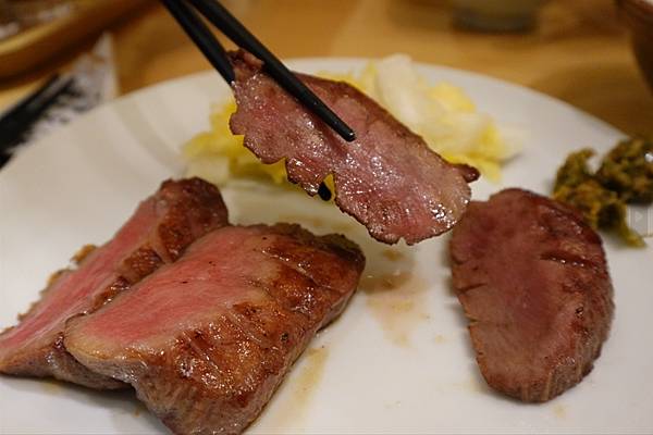 內部則是還帶有一點生肉感的粉色,牛舌本身就有加鹽調味,不需要再沾任何調味料就很好吃
