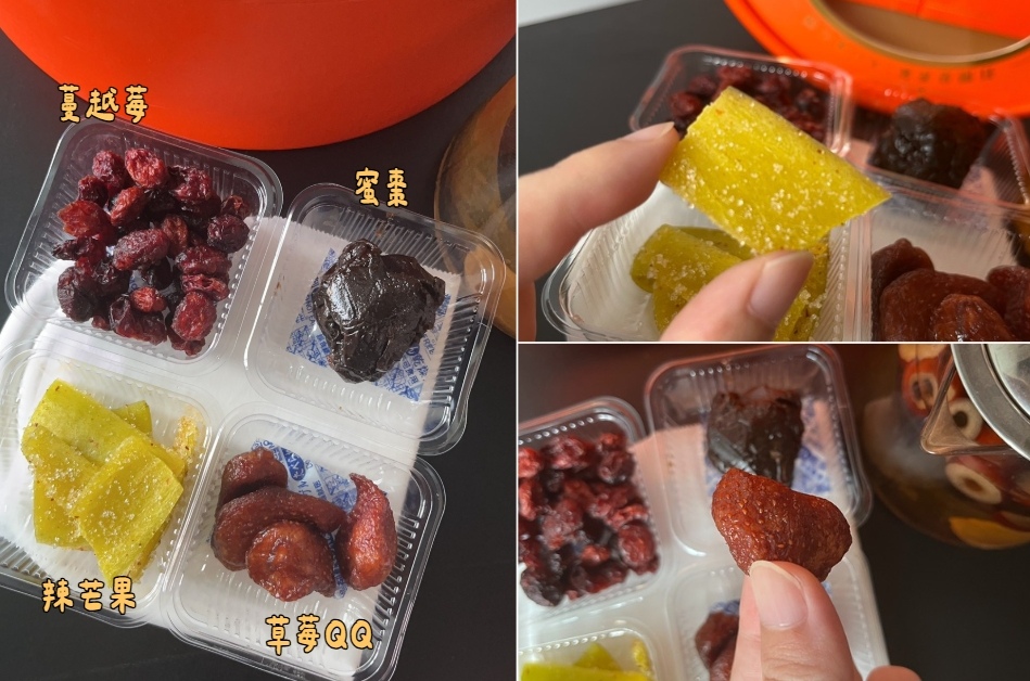 蜜棗 > 蘋果QQ > 橘子乾 > 蔓越莓 > 草莓QQ > 黃金柚子乾 > 香蕉乾 > 辣芒果。